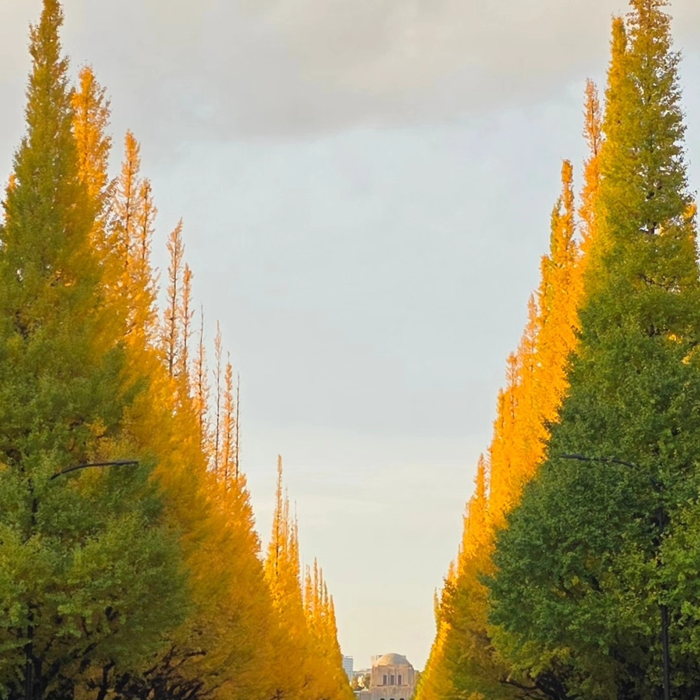 銀杏が見頃だったときの写真。12月になり落ち葉のお掃除が始まっていますね。