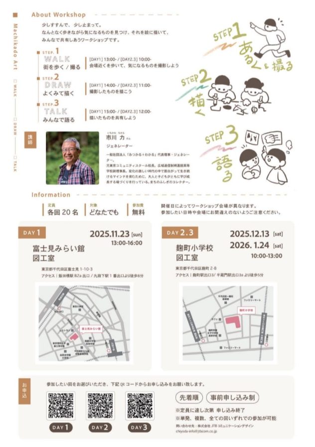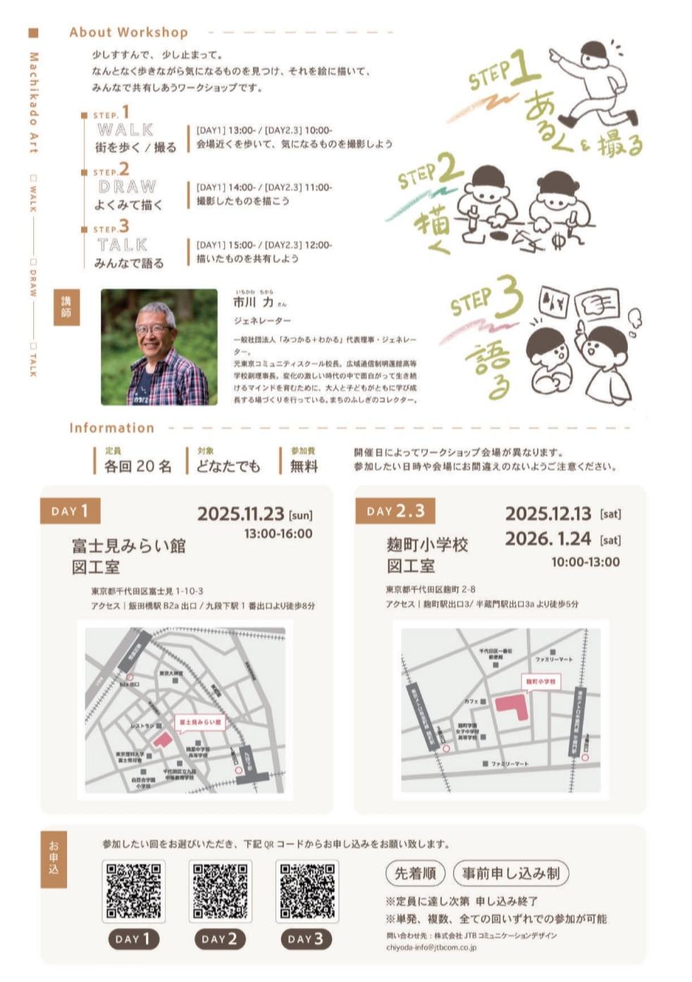 なんとなく歩きながら気になるものを見つけ、それを絵に描いて、みんなで共有しあうワークショップ。